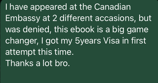 In this eBook Blueprint, I will be showing you exactly how to get {a 5Years Canadian Visa} without {Finance, Sponsors, IELTS or TOEFL} and how you can do the same.